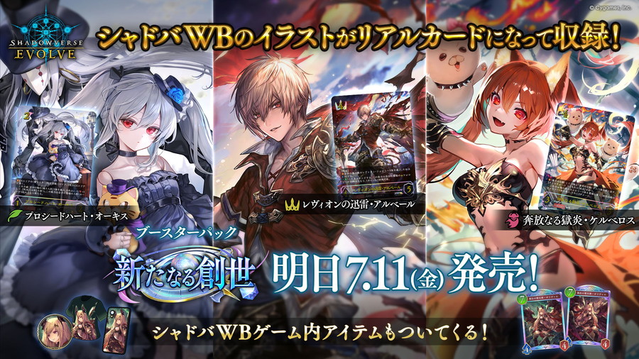 『Shadowverse EVOLVE』のオリジナルカードパックが発売されることが決定した。詳細は8月4日のエボルヴちゃんねる生放送で公開する。