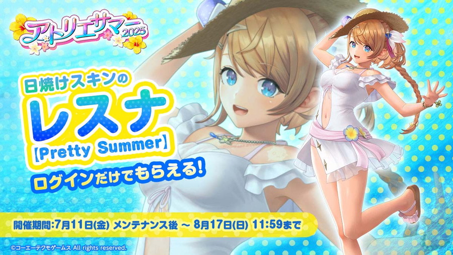 さらに、日焼けスキンのレスナ【Pretty Summer】をお迎えできる「アトリエサマー2025 特別プレゼント LOGIN BONUS」や、日焼けスキンのヴァレリア【Radiant Summer】をお迎えできる特別なミッションも開催しているので、ぜひログインして楽しんでほしい。