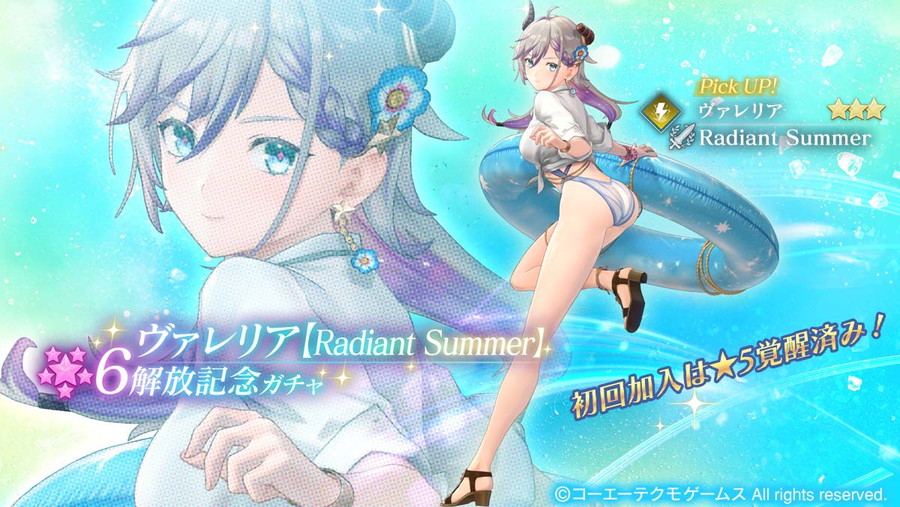 また、ピックアップ対象キャラとして★3 ヴァレリア【Radiant Summer】が登場する「ヴァレリア【Radiant Summer】★6 解放記念ガチャ」、期間中毎日1回無料で ATELIER FES を引くことができる「1日 1 回 ATELIER FES 無料キャンペーン」、復刻イベント「アトリエサマー2024 水着DE リゾート!」の追加なども行っている。