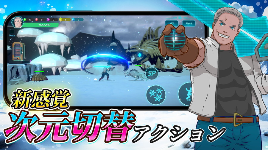 2Dの冒険中に気になる場所を見つけたら、「ADモード(Another Dimensionモード)」を起動。これは、通常のゲーム世界(2D)とは異なる もうひとつの次元(3D)を覗き込むことができる特殊なモード。ADモードでは視点が1人称に切り替わり、プレイヤーは3D空間で物理アクションを行うことができる。主人公は、"2D世界では見えない他次元の構造物や仕掛け"を感知し、それに直接干渉する能力を持っている。代表的な次元技が「ADボール」。他次元に向かってこのボールをフリックで投げると、目に見えない物体にヒットし、それを2Dの世界へ引き出すことができる。この能力を使えば、通常では通れない道を作ったり、隠したギミックを作動させたりと、"次元を越えた"発見や攻略が可能になる。さらに冒険を進めることで、さまざまな「次元技」を習得。過去には突破できなかった場所や謎も、新たな視点とスキルで解決できるようになる。