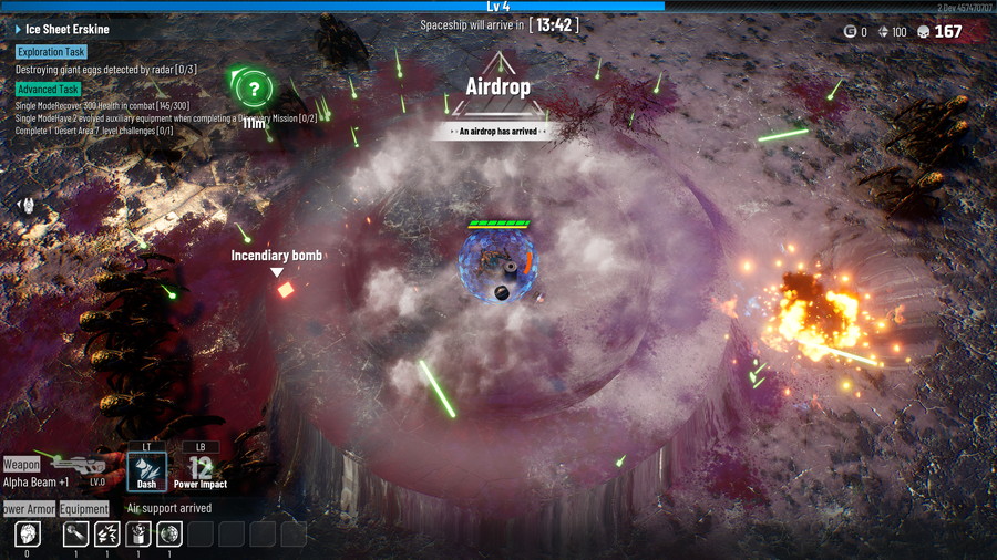本作は、グリードランドという辺境の惑星を探索する星間傭兵に扮して、「クリムゾンランド(Crimsonland)」や「ヴァンパイアサバイバーズ(Vampire Survivors)」を彷彿させた殺戮体験が楽しめる、爽快な俯瞰視点ローグライクシューティングゲーム。