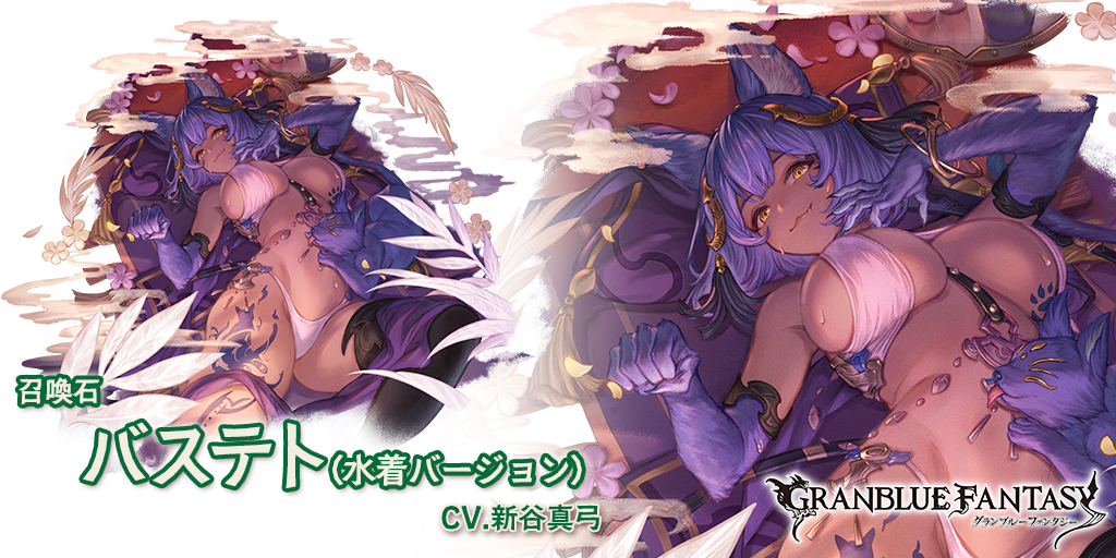 過去に開催した「決戦!星の古戦場」にて強力なボスとして立ち塞がっていた「バステト」が、水着バージョンの風属性SS レア召喚石として登場!「マイページ表示キャラ設定」で設定可能な召喚石となっている。