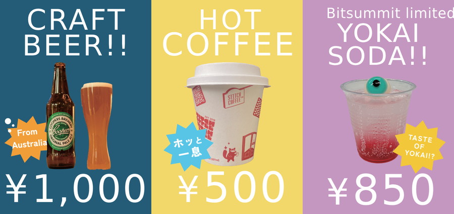 STITCH COFFEEブースでは、BitSummit the13th限定メニューも提供される。通常のドリンクやフードに加え、今回のテーマであるYOKAIをイメージした限定ドリンクや、オーストラリアのクラフトビールも登場。この特別な機会にぜひ立ち寄って欲しい。詳しい会場マップはBitSummit公式サイトを確認してほしい。