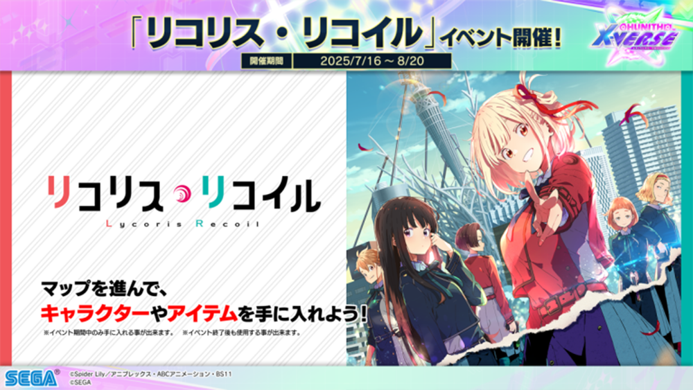 2025年7月16日(水)~2025年8月20日(水)の期間で、「リコリス・リコイル」「かいりきベア」コラボイベントが再登場。