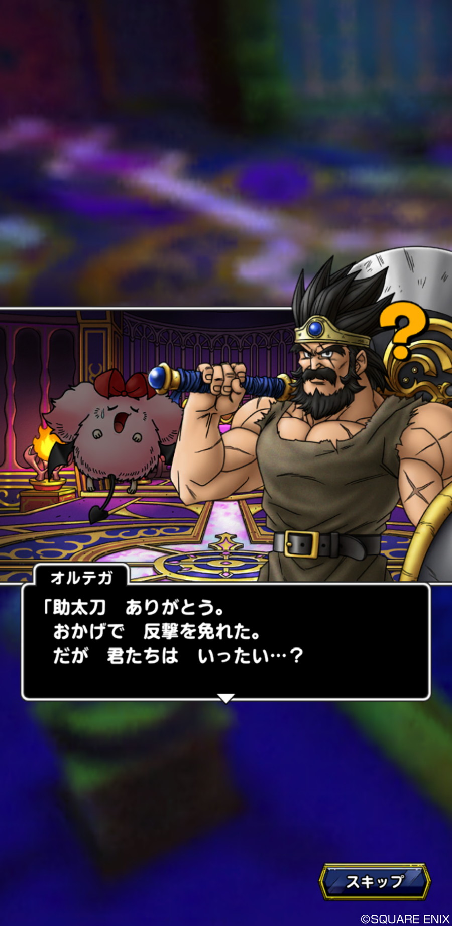 「オルテガ」はイベントクエストをクリアするとなかまになる S ランクキャラクター。必殺技として、敵キャラクター1 体に威力 620%のデイン属性物理ダメージを与え、自身のダメージを 1 ターンの間 50%軽減する「雷鳴剛力斬」を習得することができる。