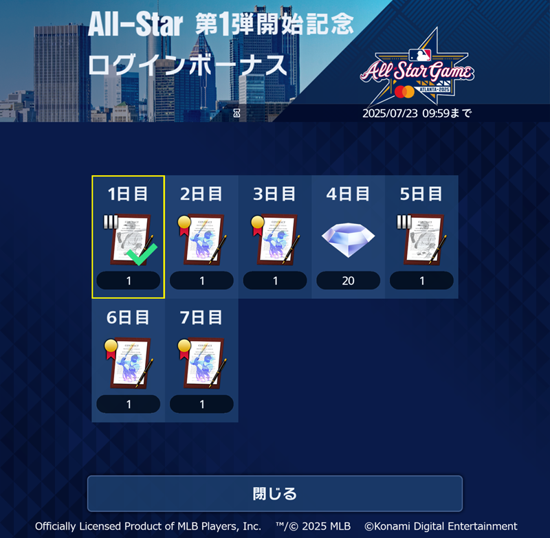 以下の期間中、特別なスカウト「All-Star 第1弾」を開催。大谷翔平選手(ロサンゼルス・ドジャース)のほか、カル・ラリー(シアトル・マリナーズ)、ピート・クロウ=アームストロング(シカゴ・カブス)など、「MLBオールスターゲーム」に出場した選手のうち計31名が登場する。この機会にお気に入りの選手を手に入れて、チームを強化しよう。