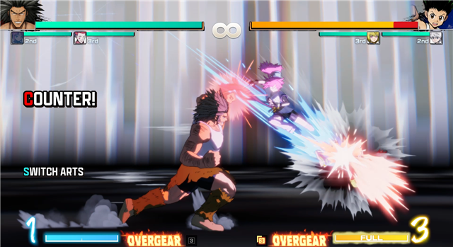 さらに、「ネンスタンス」と「アーツ」ボタンを組み合わせることで、ゲージを消費して放つ強力な必殺技「オーラアーツ」も使用できる。ネテロの「百式観音・零の掌」や、ウボォーギンの「超破壊拳(ビッグバン・インパクト)」など、特大の一発をお見舞いするチャンスだ!