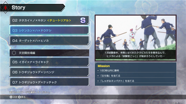 しかし、筆者のように『HUNTER×HUNTER』は大好きだけど、格闘ゲームはちょっと苦手という方はまず「ストーリー」から始めることをオススメする。ここでは、TVアニメ『HUNTER×HUNTER』のシナリオを追体験しながら、基本的なゲームの操作方法を学ぶことができる。各ステージにはミッションも用意されており、クリアすることで報酬を得られるので遊び応えも抜群だ!