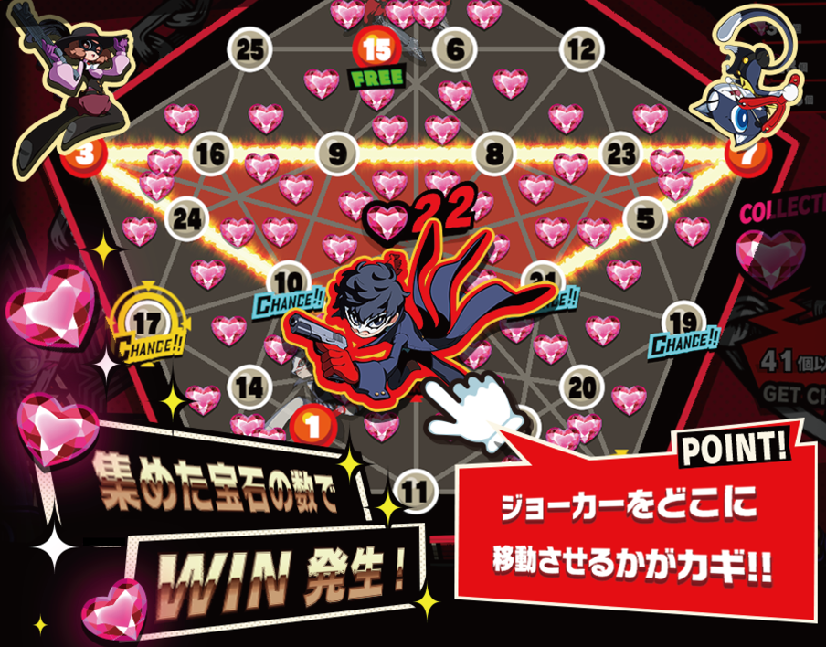 3球入賞後のハーフタイム中が本ゲーム最大のカギとなっており、登場したジョーカーをプレイヤーの操作により、任意のマスに移動させることができる。