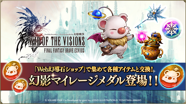 7月17日より、FFBE 幻影戦争「Web 幻導石ショップ」でアイテムを購入するとついてくる「幻影マイレージメダル」が登場した。ぜひ集めて、各種アイテムとの交換にご活用ください。