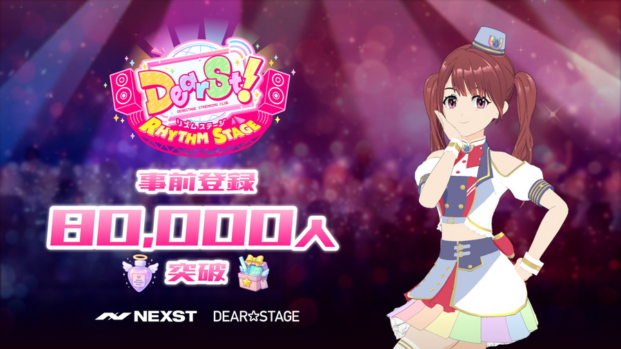 『でぃあすと!リズムステージ』では現在、事前登録キャンペーンを絶賛開催中。Eメールでの事前登録者数は、キャンペーン開始からわずか1ヶ月で既に8万人を突破した。登録者数の達成状況に応じて、正式サービス開始時にゲーム内で役立つ豪華な有料アイテムを全員にプレゼントする。さらに、登録者数が10万人を達成した際には、特別にNEXSTのユーティリティトークン($NXT)が抽選で獲得(エアドロップ)できるチャンスも用意している。本キャンペーンはゲームリリース前日まで継続予定。