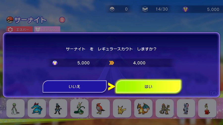 VPを使用する代わりに無期限でポケモンをスカウトできる。自分と相性の良いポケモンを見つけることができたら、レギュラースカウトを活用したい。