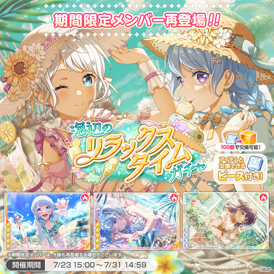 ・ブシロード、『ガルパ』で「海辺のリラックスタイムガチャ」を開催