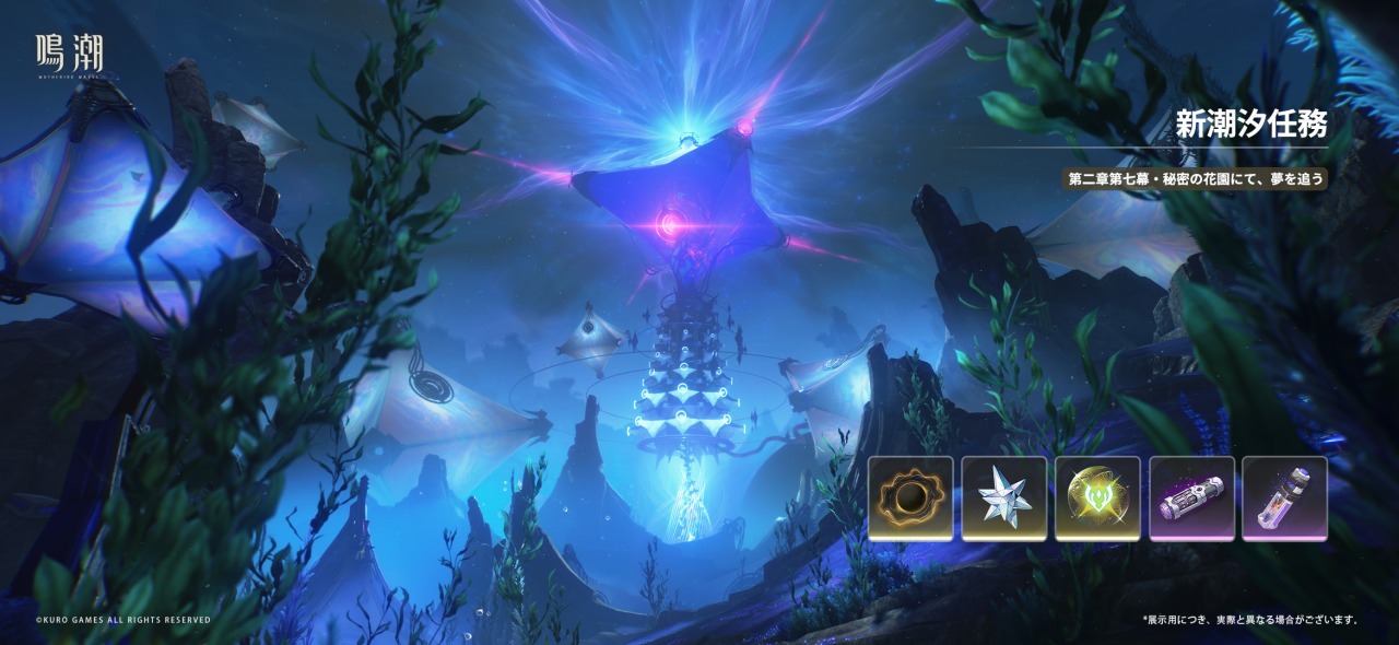 この新エリアは【潮汐任務】第二章・第七幕「秘密の花園で、夢を追う」の任務ガイドに沿って向かえる。「隠海実験場」では、特殊探索モジュール「指揮棒・クリムソン」を使って調律することで、さまざまな不思議な変化が起こるよう。その謎に包まれた現象の詳細は、ぜひ探索で明らかにしてみてほしい。