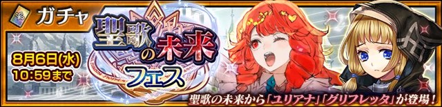 セガは、『チェインクロニクル第5部 ―未来への導標(しるべ)―』において、7月24日より、「聖歌の未来 前篇」の配信を開始することを発表した。また、配信を記念して「ユリアナ(CV:小岩井ことり)」、「グリフレッタ(CV:伊藤美来)」が新登場する“聖歌の未来フェス”を開催する。