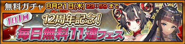 ■1日1回無料で引ける“12周年記念!毎日無料11連フェス”開催中!