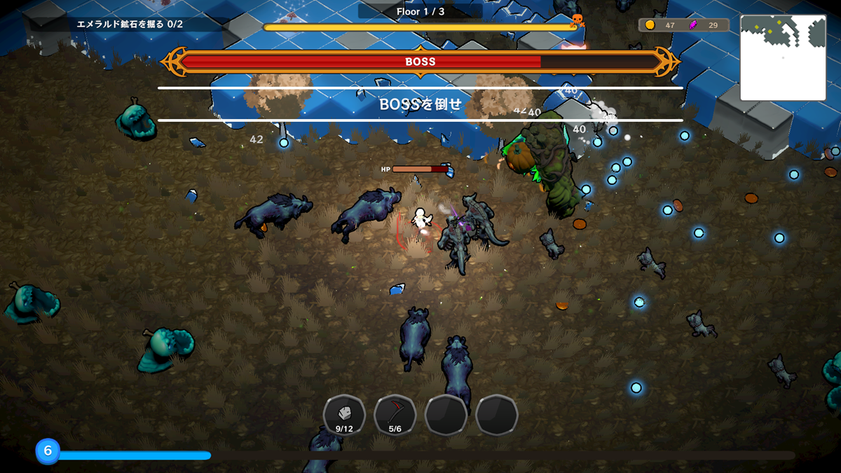 大量発生したスライムを掘って道を切り開き、大勢の敵を蹴散らそう!