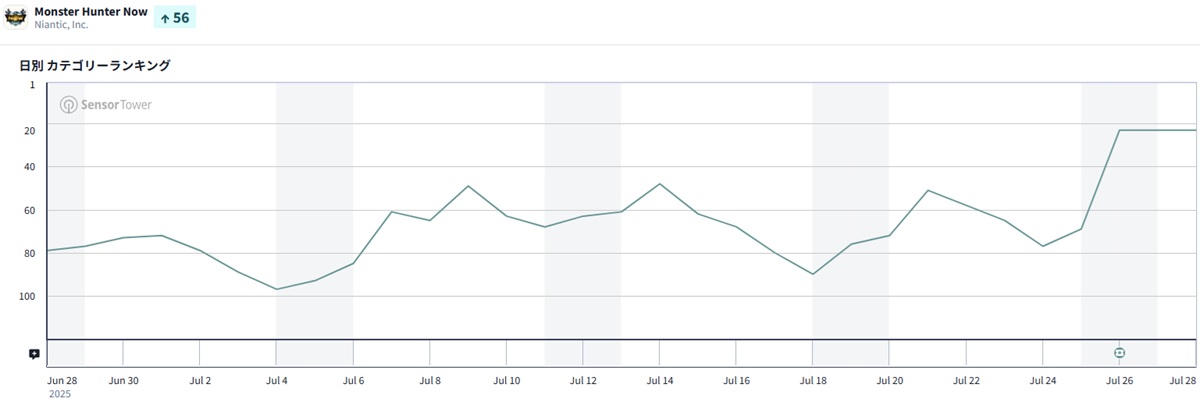 | 23 | 69 | ↑46 | Monster Hunter Now(モンスターハンターNow) | カプコン<9697>/Niantic |
