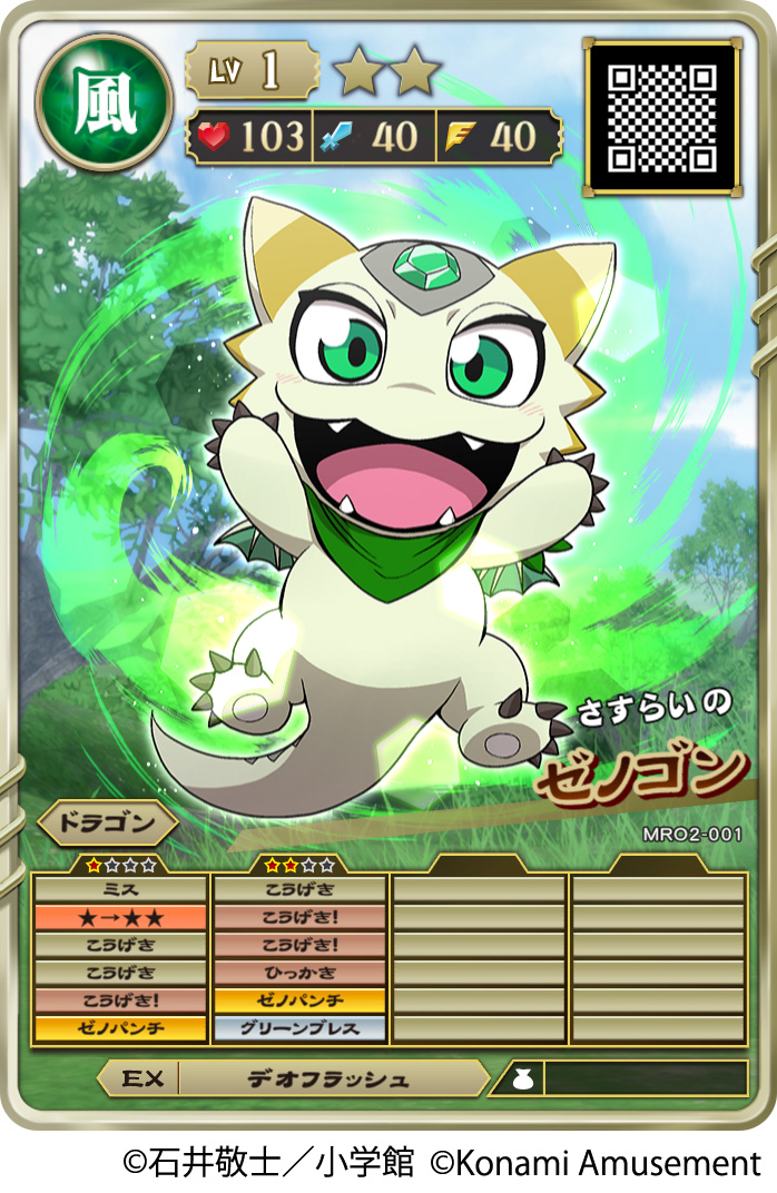 バトル前にこのカードをゲーム機にスキャンすると、まんがに登場する「ゼノゴン」と同じ見た目の「ゼノゴン」が召喚される。