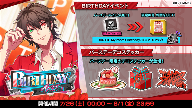 一郎の誕生日を記念し、「SSR【バースデー2025】山田一郎」を獲得することができるGコレクトや、バースデー限定のデコステッカーが獲得できるイベントなどを開催している。