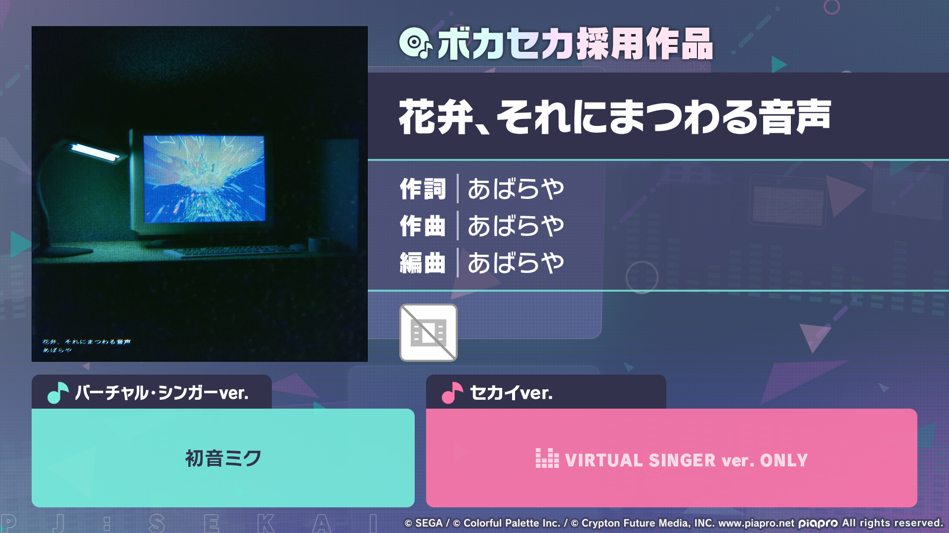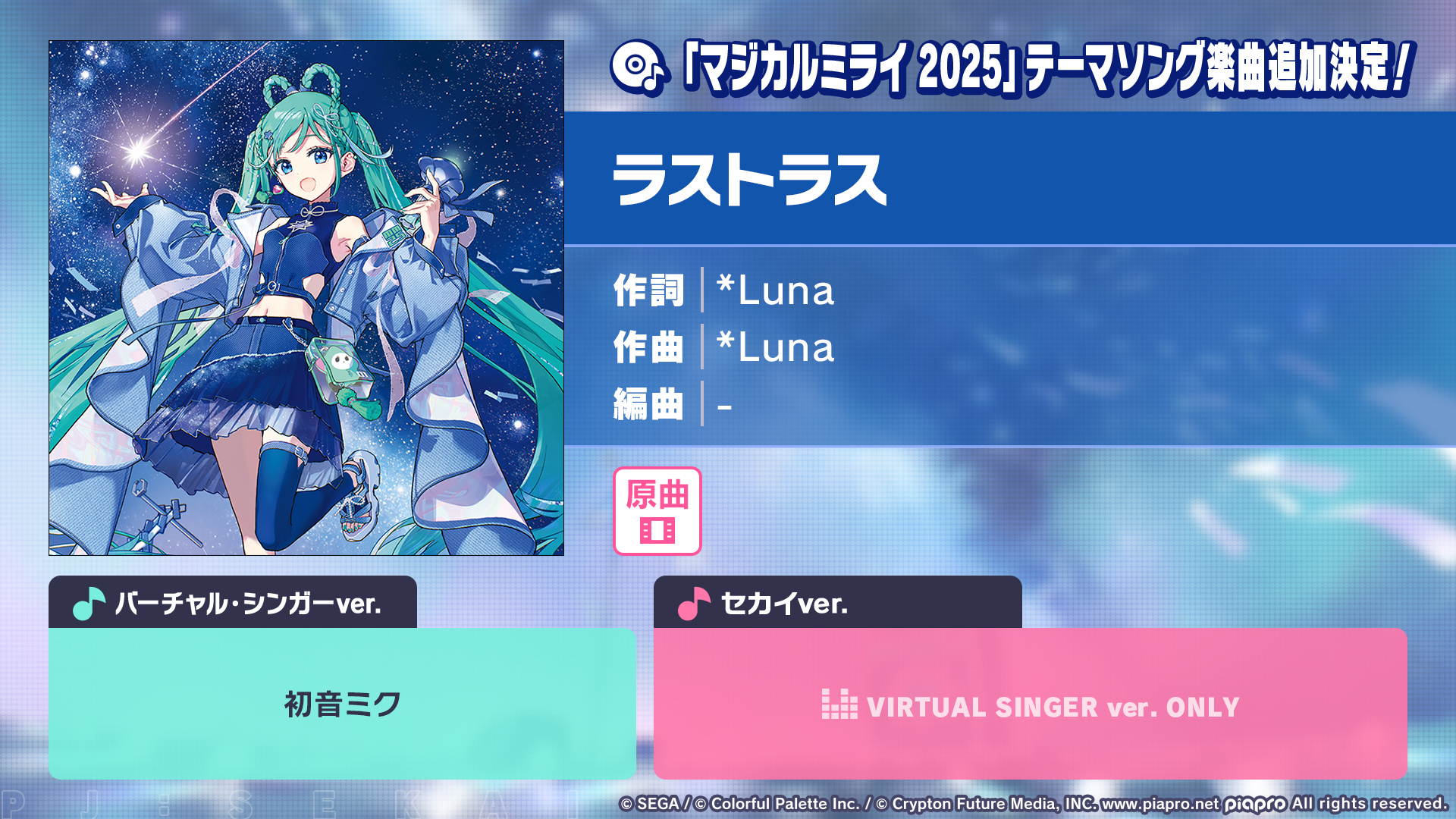 著作権表記:© SEGA / © Colorful Palette Inc. / © Crypton Future Media, INC. www.piapro.net All rights reserved.