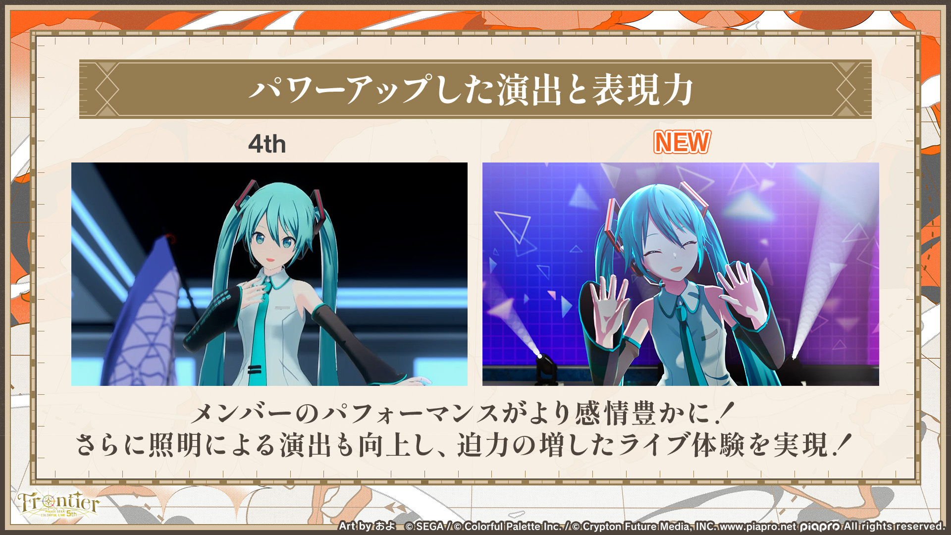今回のセカライは、ステージがより細部まで丁寧に作り込まれ、MCや楽曲の演出表現も大幅に進化。ビジュアル面もさらに磨きがかかり、キャラクターたちのパフォーマンスや感情表現が一層豊かになったことで、これまで以上に迫力あるライブ体験をお届け。“新しい領域”に踏み込んだ「Frontier」に、期待しよう。
