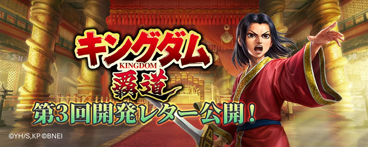 バンダイナムコエンターテインメントは、本日(7月30日)、新作スマートフォンアプリ『キングダム 覇道』の第3回開発レターを公開したことを発表した。