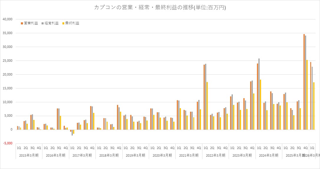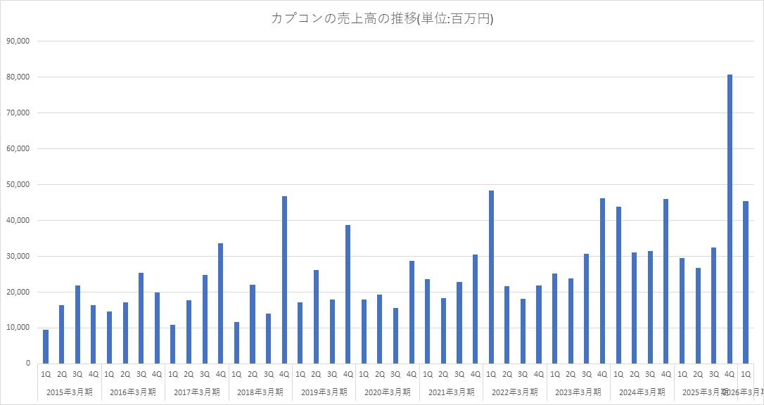 カプコン<9697>は、7月30日、2026年3月期 第1四半期の連結決算を発表し、売上高455億0200万円(前年同期比53.7%増)、営業利益245億9700万円(同90.8%増)、経常利益228億8300万円(同69.7%増)、最終利益172億3800万円(同72.8%増)と大幅増収増益を達成した。