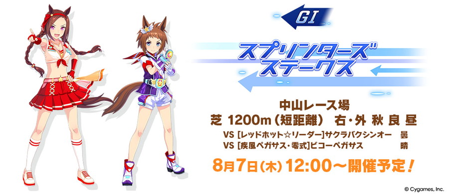 2025年7月31日12:00から、ピックアップ プリティーダービーガチャに新たな育成ウマ娘、ピックアップ サポートカードガチャに新たなサポートカードが登場する。