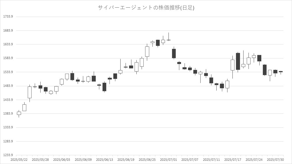 最後に騰落ランキングを見ると、サイバーステップ<3810>やイオレ<2334>、クルーズ<2138>、テイツー<7610>が値上がり率上位となり、カプコン<9697>、円谷フィールズHD<2767>、Aiming<3911>、任天堂<7974>が値下がり率上位となった。