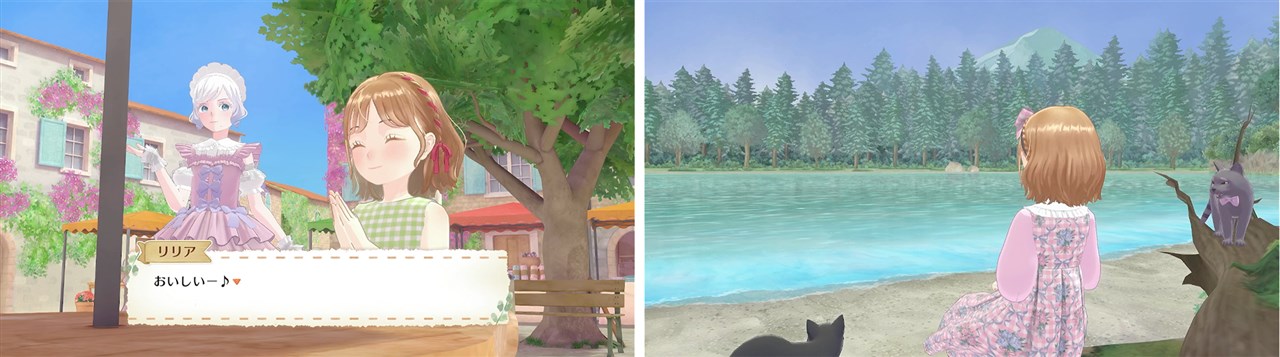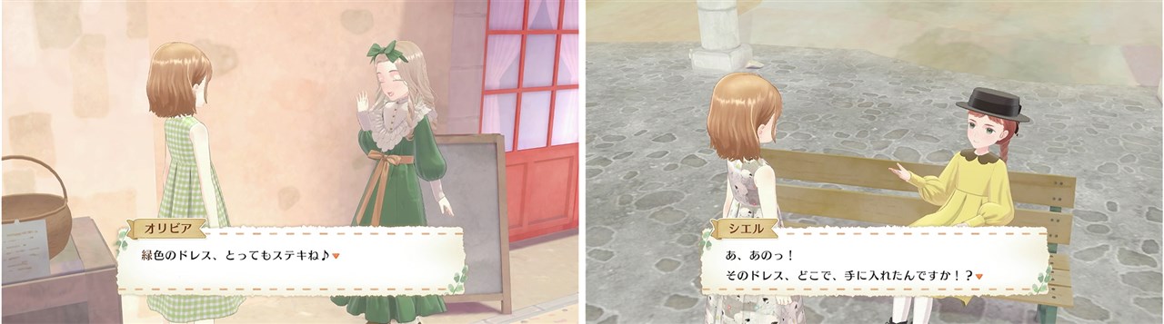 リリアが着替えてお出かけすると村人のリアクションも変化することも本作のポイントだ。赤いリボンをつければ「私も欲しい!」と声をあげる女の子、新しい型に驚く流行好きなお姉さん……ドレスを着替えるたびに人々とのつながりも一層深まり、いつも新鮮な気持ちで生活を送ることができる。