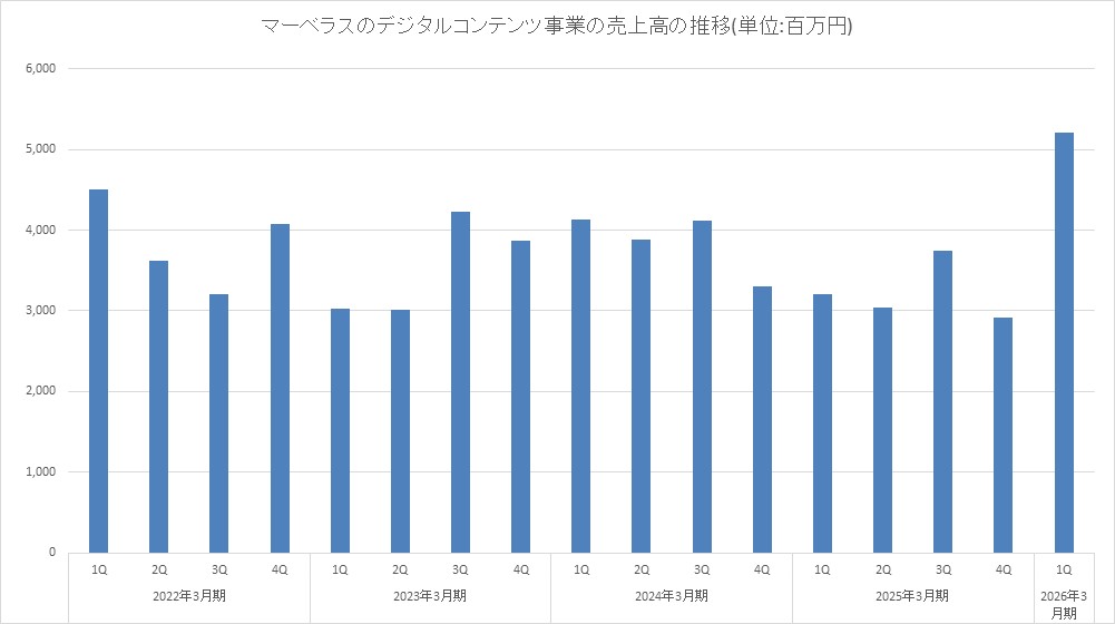デジタルコンテンツ事業の業績推移は以下の通り。