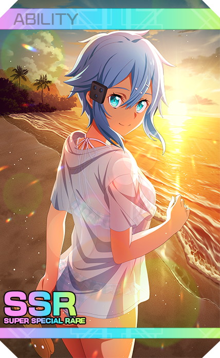 水着姿の水着姿の《サンセットスマイル》アスナ(光属性/ウィザード)と、《サマースマッシュ》ユウキ(光属性/サポーター)がイベントピックアップスカウトに登場する。