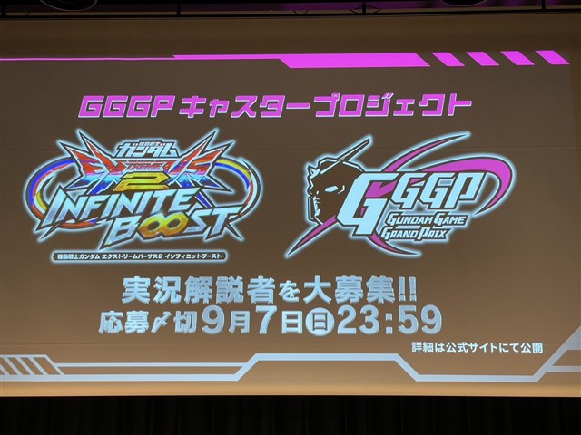 2018年8月を皮切りに始まったGGGPは、今回で7回目の開催となる。毎年さまざまなガンダムのゲームタイトルを採用して賞金制大会を実施している。本大会では、シリーズ15周年記念タイトルとして登場した、アーケードゲーム「EXVS.」シリーズの最新作『機動戦士ガンダム エクストリームバーサス2 インフィニットブースト』を採用することが明かされた。