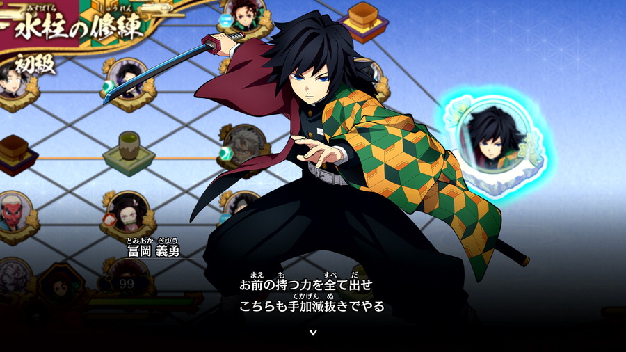 本作では鬼殺隊最高位の剣士「柱」の9人が全員登場するほか、「玉壺」「憎珀天」といった上弦の鬼などを含む40以上のプレイアブルキャラクターが登場する。新たに2つ目の奥義が追加されるキャラクターや、特定の組み合わせによって発動する「合体奥義」など新要素も充実、アニメの中で共に戦った組み合わせをはじめ、アニメでは描かれなかった夢の組み合わせなど、理想のタッグチームを作ってオフライン・オンラインで対戦が楽しめる。