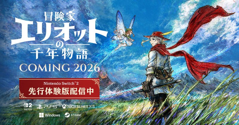 スクウェア・エニックスは、本日(8月1日)、2026年に完全新作アクションRPG『冒険家エリオットの千年物語』(対応機種:Nintendo Switch 2/PS5/Xbox Series X|S/Windows/Steam)を発売することを発表した。