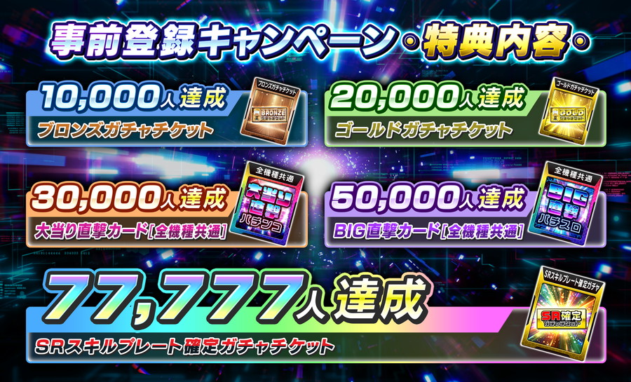 サービス開始時には人気遊技機メーカーの複数のヒット機種が基本無料でプレイ可能となる。加えて、パチンコホール最大手のダイナムをはじめとするリアルホールとの連動も実現。
