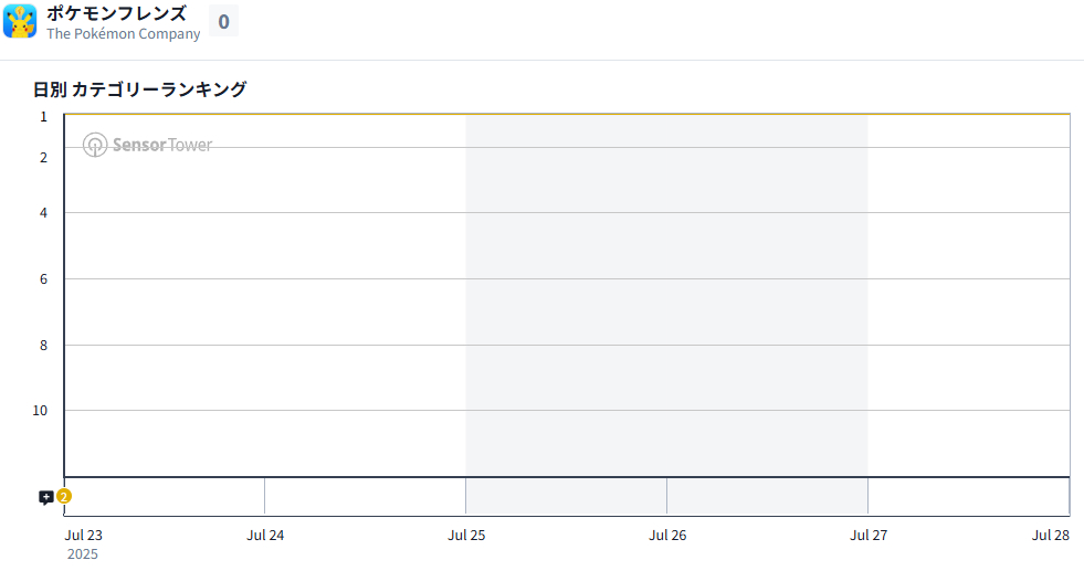 セールスランキングとは異なり、無料ランキングでは『ポケモンフレンズ』が首位を獲得しており、ユーザーの新規ダウンロード動向に変化が見られる。