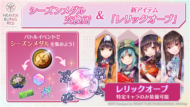 「レリックオーブ」は、シーズンメダル交換所で交換できる新たなアクセサリ。 特定のキャラクターのみに装備可能となっており、第⼀弾として以下の4キャラクターに追加される。