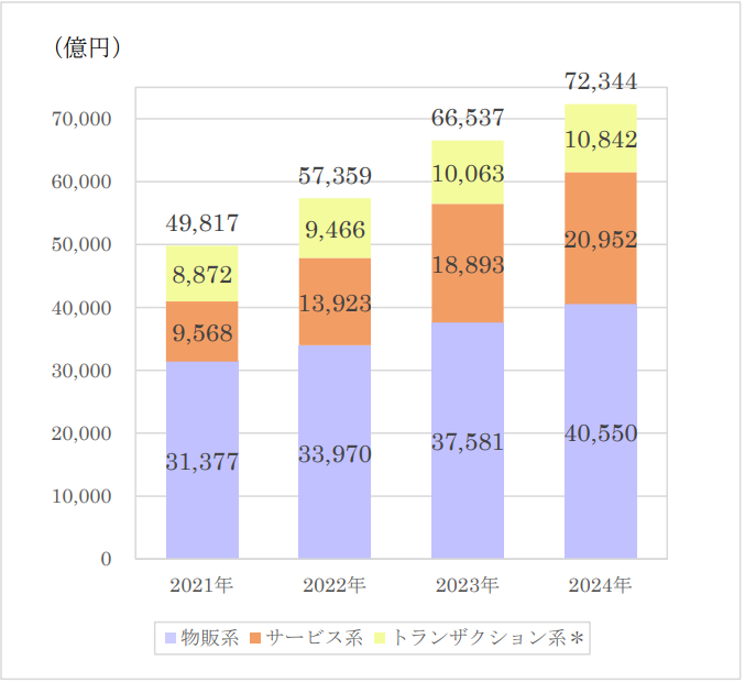 ■2024年モバイルコマース市場は、7兆2344億円