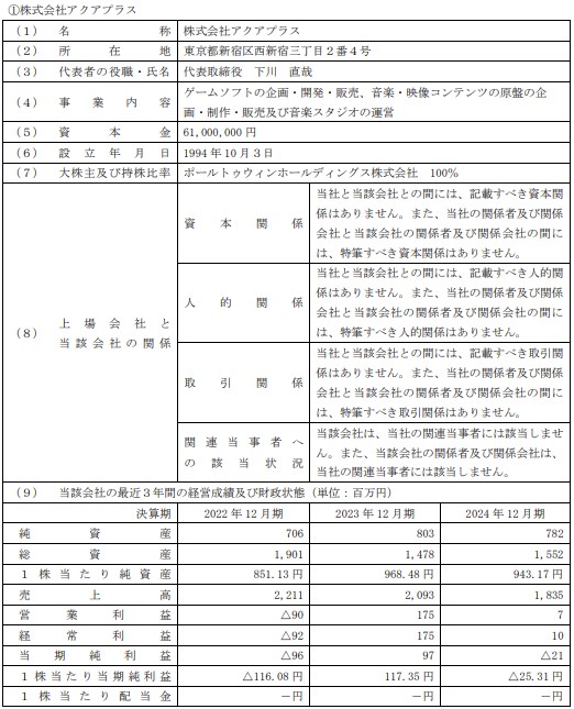ユークス、ポールHDからアクアプラスを8月29日付で買収へ 取得価額は約7億8000万円 IP企画・ブランド構築力やパブリッシング機能を補完