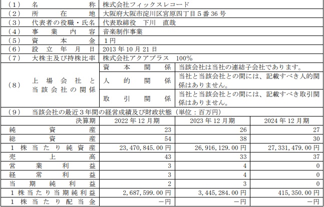 この株式譲渡により、アクアプラスの子会社であるフィックスレコードも異動し、2025年9月以降、アクアプラスおよびフィックスレコードは連結の範囲から除外される。これにより、メディア・コンテンツ業務からの撤退が完了する。