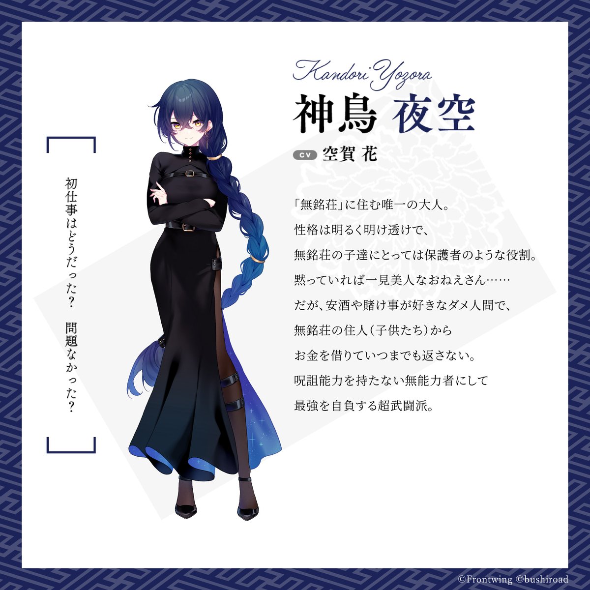 空賀:無銘荘で過ごしている普段の夜空さんは、子ども達が大事に貯めたお金を借りたり、そのお金を使ってギャンブルに興じているとんでもない大人ですけど、リーダー的な存在で子ども達を導く先生という立場でもあるんです。教壇に立つシーンでは、この夕暮れの世界についてちゃんと説明してくれます。普段は頼りなさそうに見えますが、命を扱うお仕事をしている事もあってすごく真面目でしっかりとした大人ですし、これが最強と言われる所以かという、どこか圧を持ったキャラクターです。