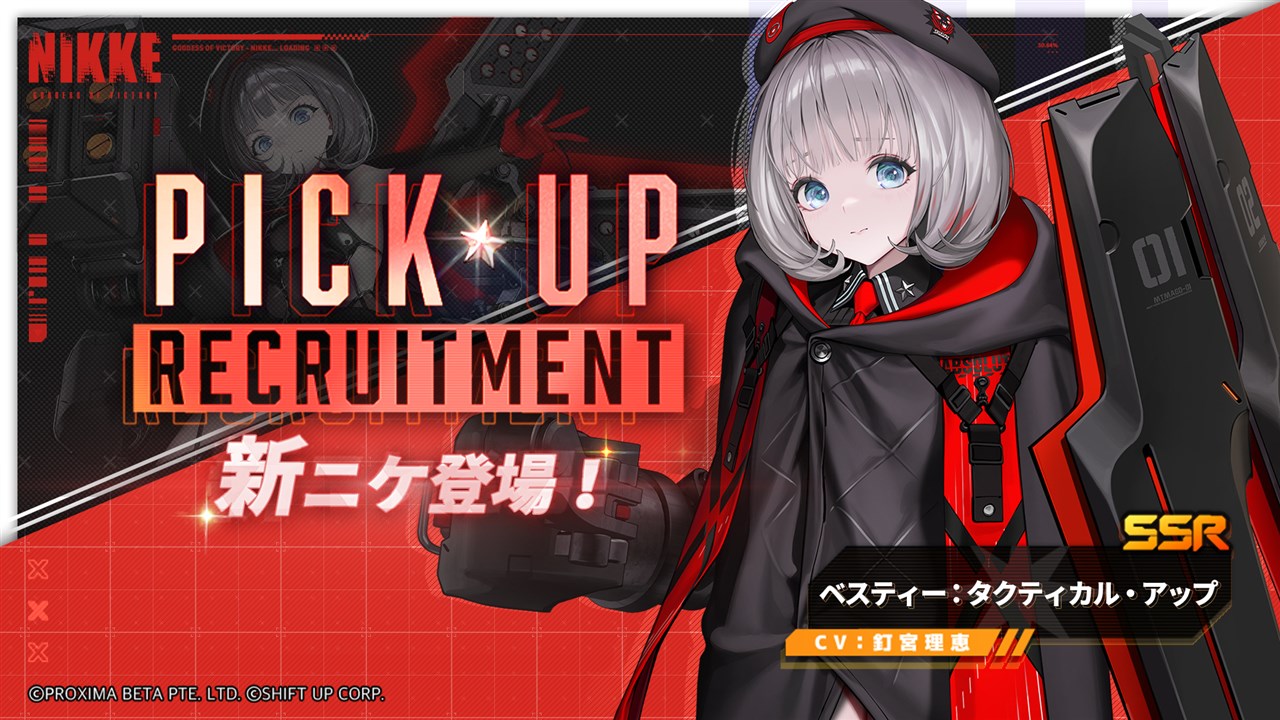 タクティカル・アップ計画でより強くなったアブソルート部隊の末っ子、SSRニケ「ベスティー:タクティカル・アップ」が特殊募集で登場する。