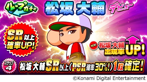 「松坂 大輔」が新たに出現するキャンペーンガチャを開催する。ステップ4回目は「SR」以上の「松坂 大輔」が確定で出現する。
