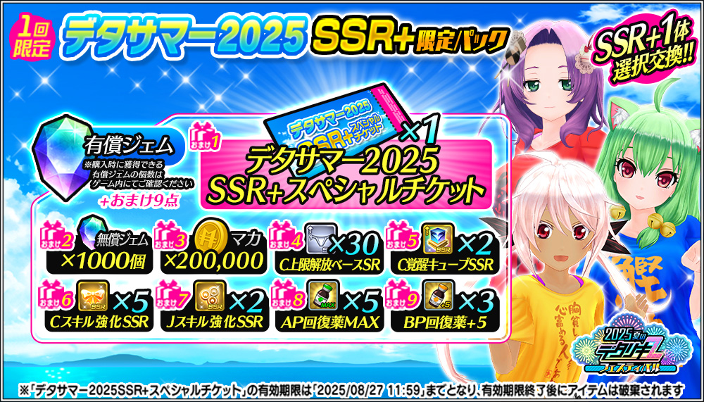 ▼デタサマーSSR+/SSR限定パック 開催期間: 8/7 (木)0時 ~ 8/20 (水)11時59分