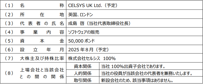 セルシス<3663>は、本日8月6日、英国ロンドンに100%子会社として、CELSYS UK Ltd.(予定)を設立することを明らかにした。子会社の資本金額が同社の資本金額(億1000万円)の100分の10以上に相当し、同社の特定子会社に該当することになる。代表には、同社の成島 啓社長が就任する。