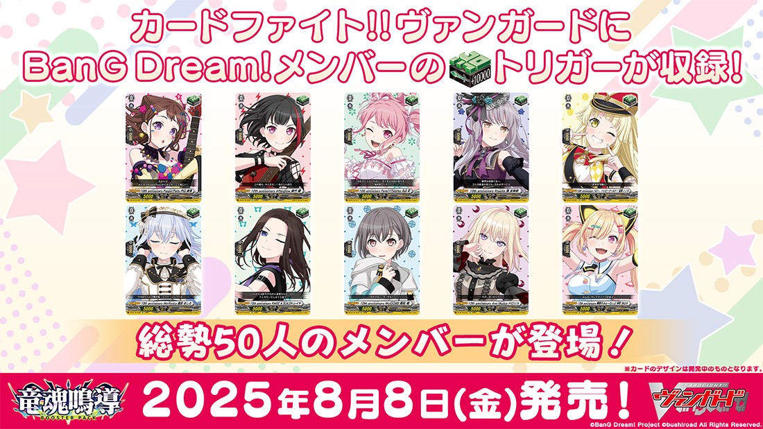 ブシロード<7803>は、8月8日にブースターパック「竜魂鳴導」を発売する。「竜魂鳴導」では注目キャラクター廻間ミチルが劇中で使用するユニット「魔宝竜皇 ドラジュエルド・マグナス」が登場。さらに新キャラクター美夜呼ルカの使用するユニット「楽園へ導く者 ナナクリル」など、アニメ登場カードが多数収録している。
