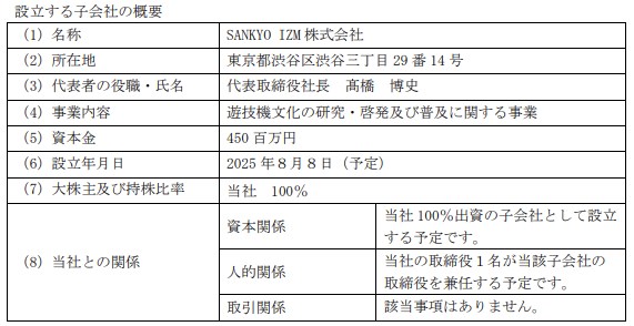 SANKYO<6417>は、8月7日、パチンコ本来の魅力をあらためて社会へ伝えていく新規プロジェクト「KUGITAMA(クギタマ)」を始動し、その推進のために子会社「SANKYO IZM株式会社」を設立することを発表した。