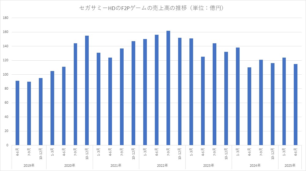 セガサミーの「F2P」売上高、8四半期続いた前年同期比マイナスがストップ 25年4~6月は『P5X』が順調な立ち上がりでプラスに転じる